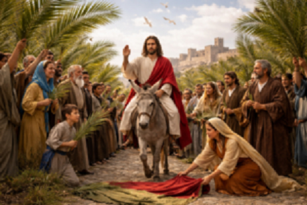 A liturgia de Ramos nos apresenta um Messias que rompe expectativas. Jesus entra na cidade montado num jumento, sinal de humildade e serviço. Ele não se impõe como um rei poderoso, mas se revela como aquele que se coloca ao lado dos pequenos e sofredores. O Papa Francisco recorda que “Jesus não salva a partir de um trono, mas da cruz”, ensinando que o verdadeiro poder se manifesta no amor que se entrega. Essa é a base da solidariedade cristã.