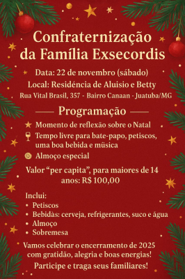 CONFRATERNIZAÇÃO DA FAMÍLIA EXSSECORDIANA – NOVEMBRO/2025 – SÍTIO DO ALUÍSIO E BETTY (JUATUBA/MG)